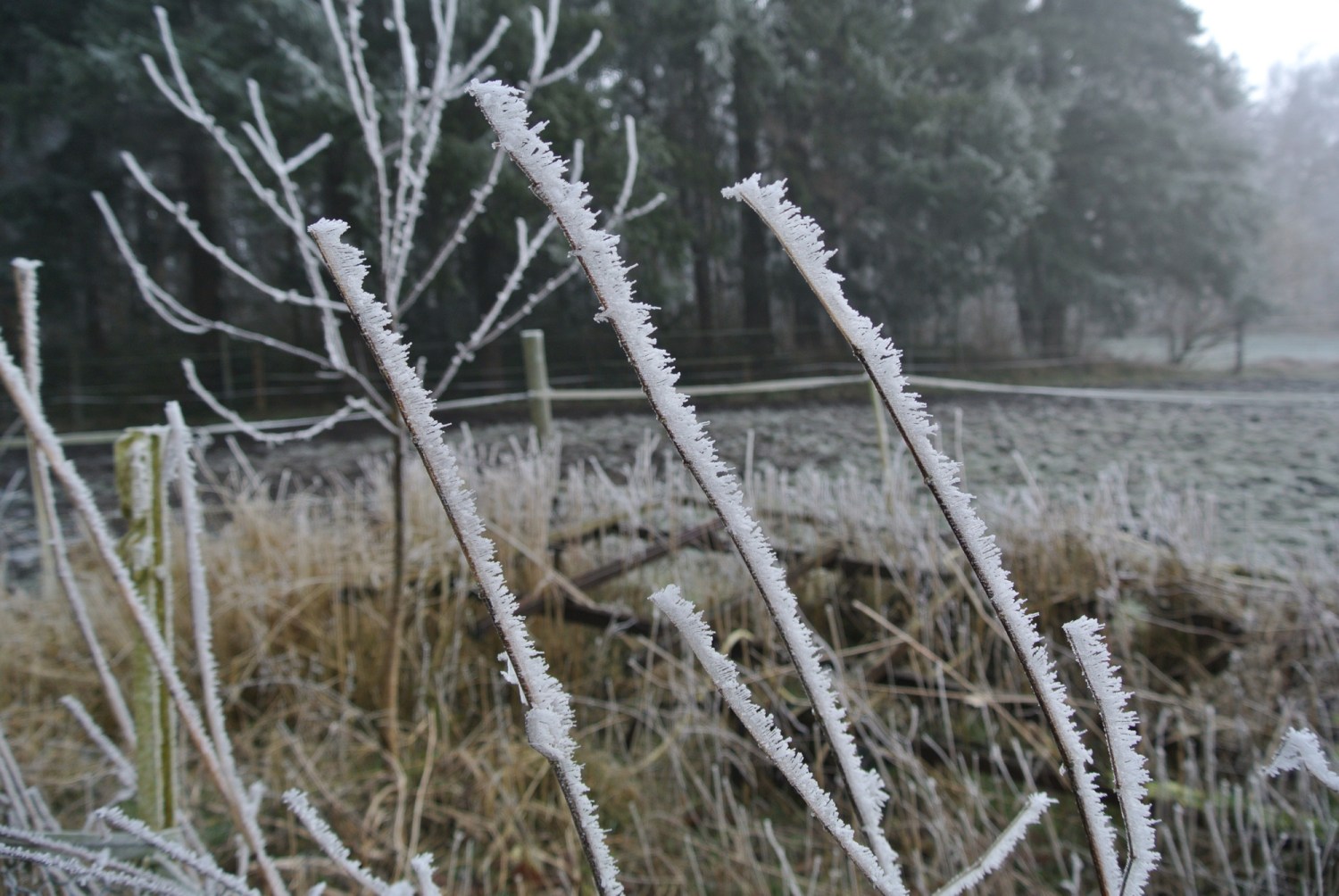 Schaut mal, die vereisten Bäume im Hintergrund.