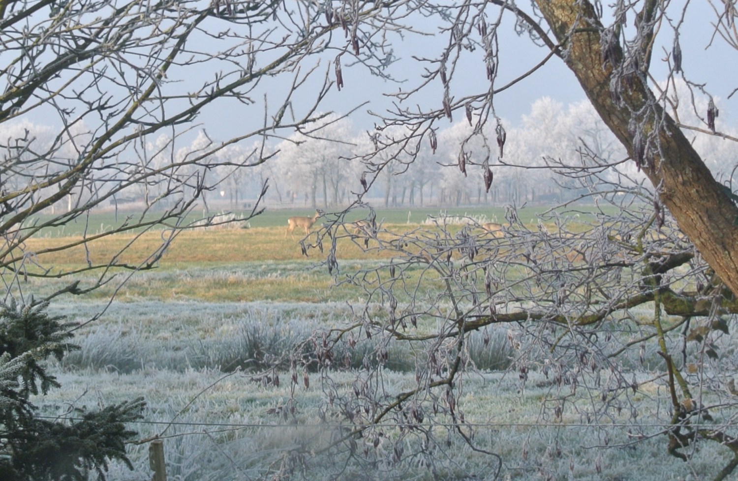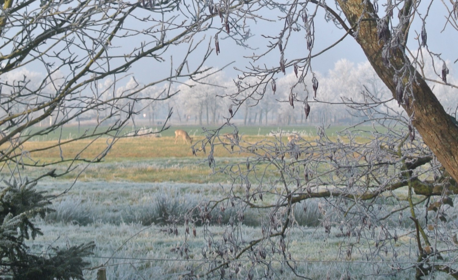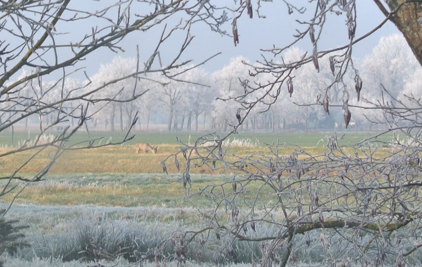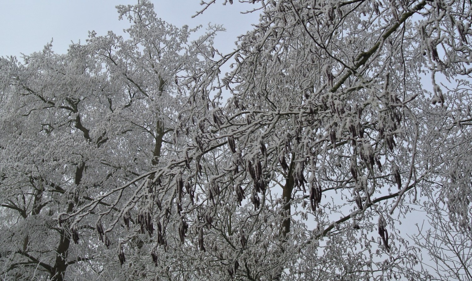 Februar 2025: Nach mehreren Tagen mit extrem dicken Nebel und Minustemperaturen, hatte sich eine dicke Eisschicht an den Bäumen gebildet.