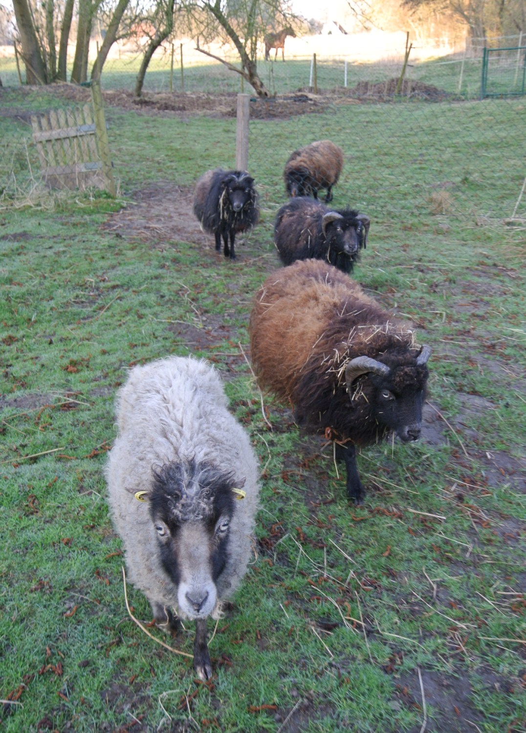 Das Schafgehege liegt in der Mitte unseres Hofes, umgeben von den beiden Pferdeweiden, dem Hundeauslauf / Gartenteil und den Gebäuden.