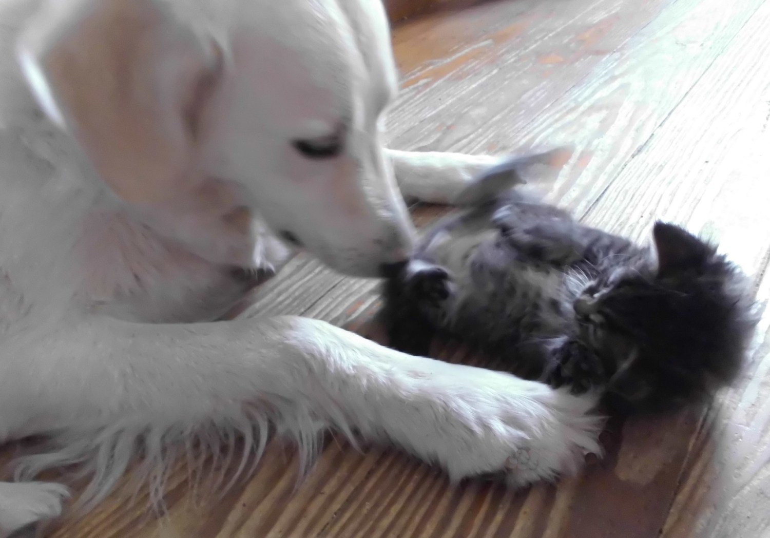 Die Herdenschutzhündin hatte gleich einen Draht zu den Babys.Die Körperpflege wurde auch übernommen.