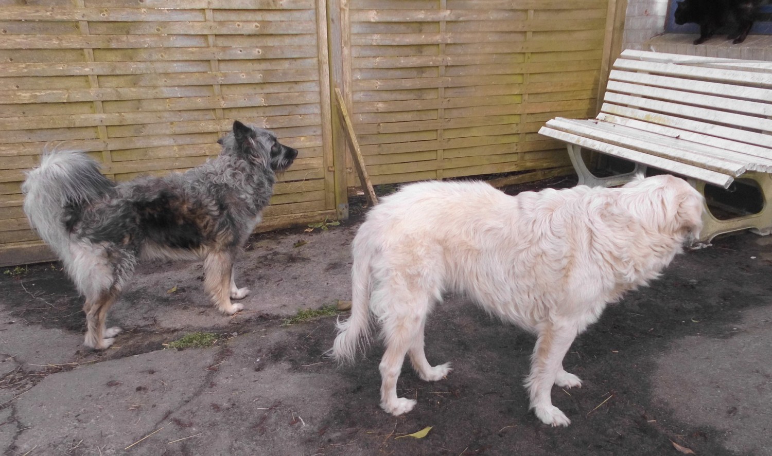 Hier seht ihr eines der ersten Bilder von Marcy, mit ihrer neuen Freundin Giada, ein italienischer Herdenschutzhund.