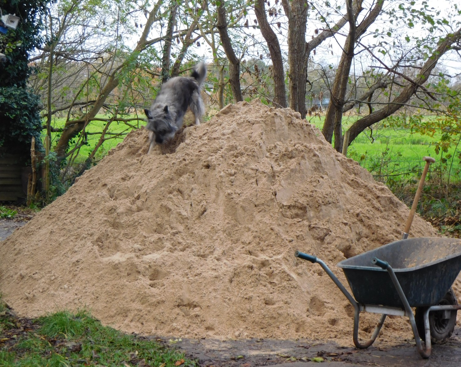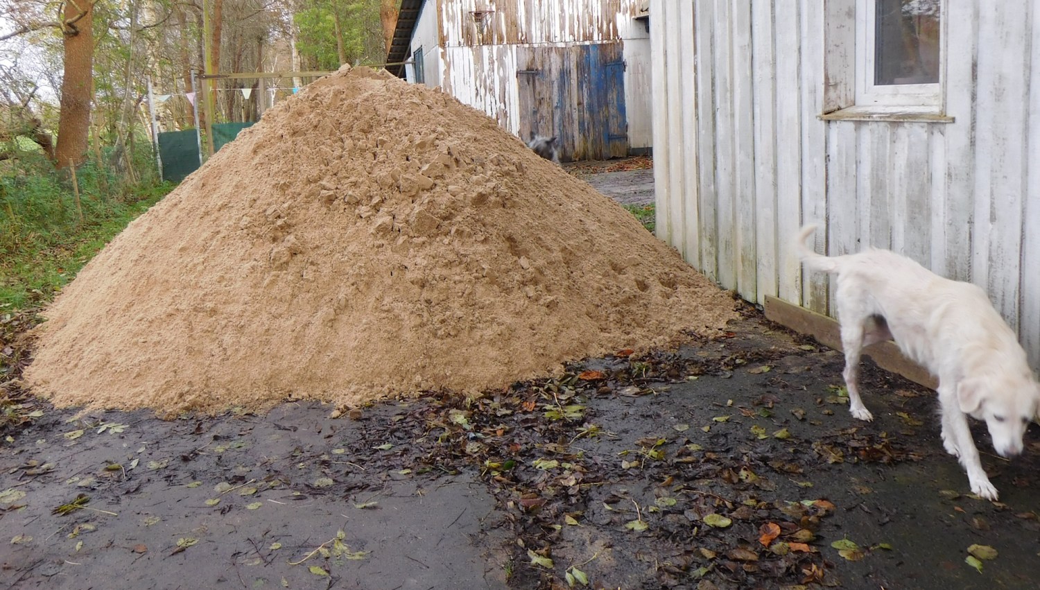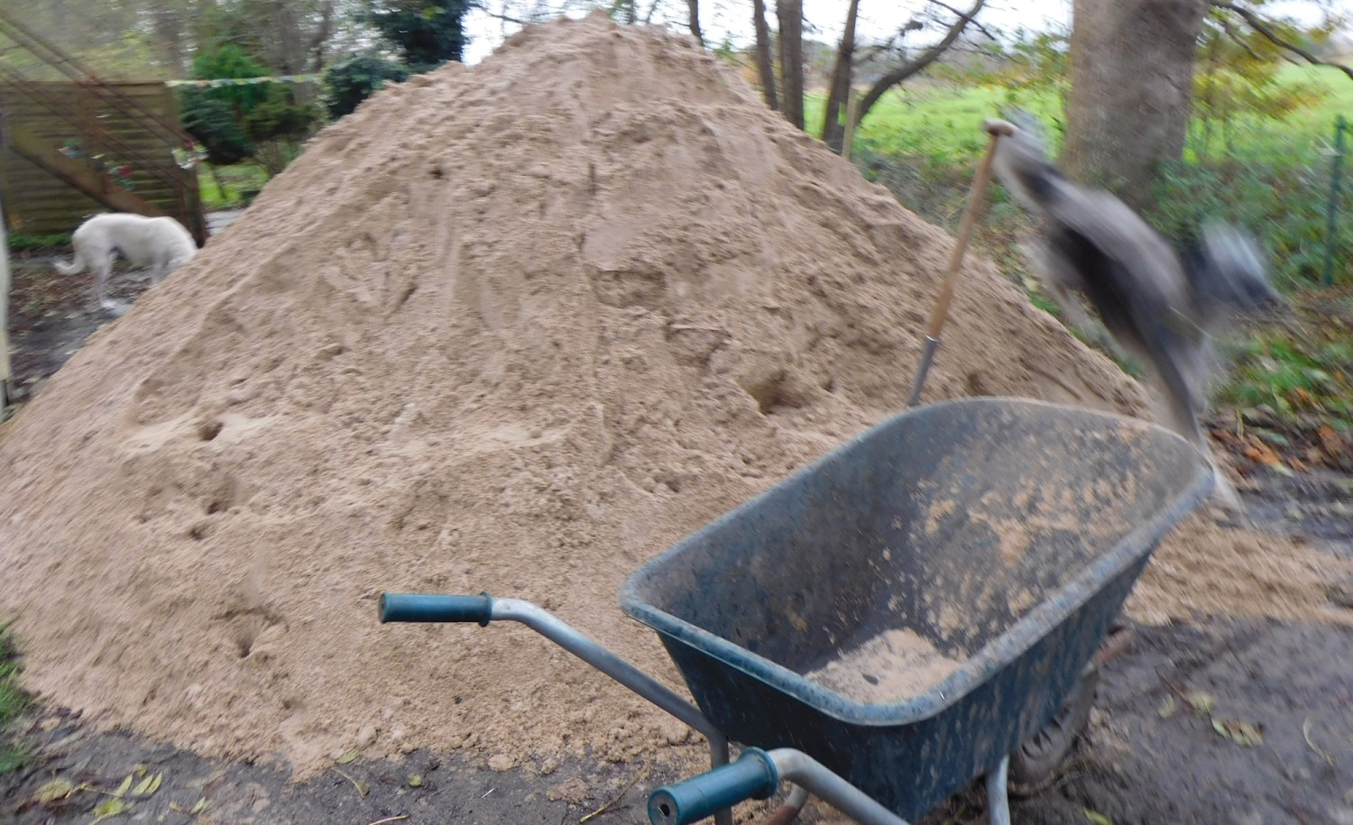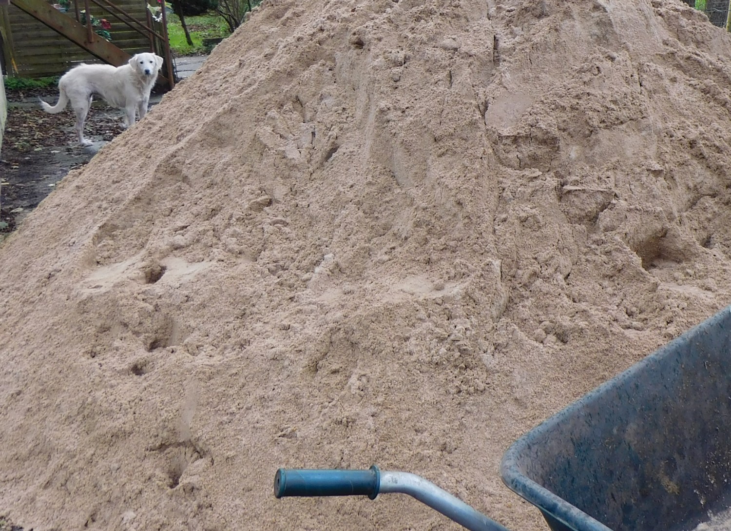 Am Montag haben wir 10 Kubikmeter Sand geliefert bekommen.