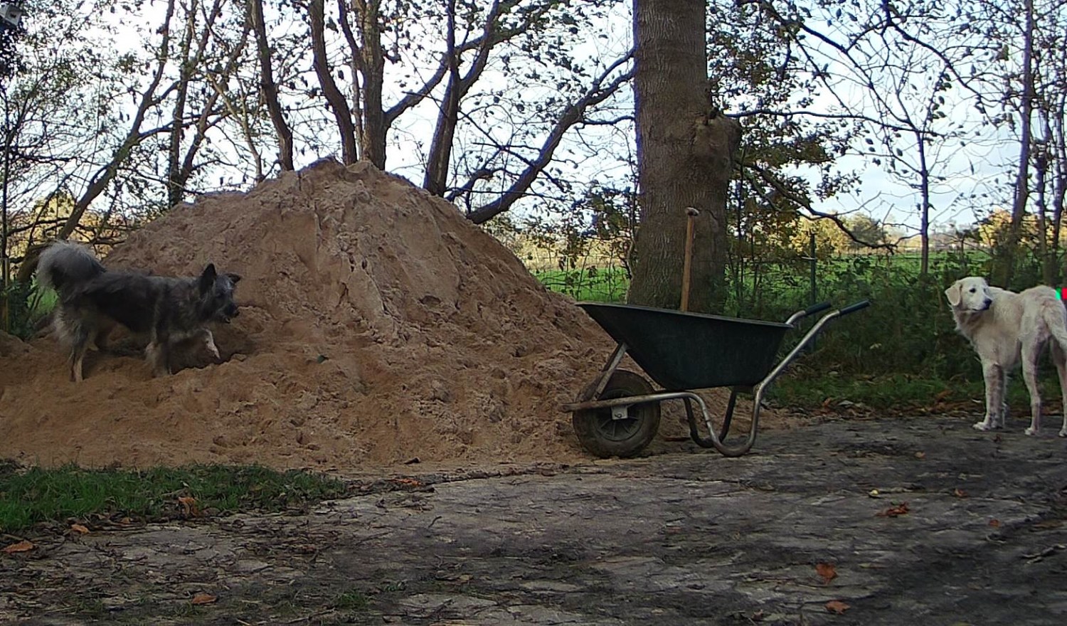 Giada – der Maremmano – verhält sich ganz anders. Sie schaut sich den Haufen an und denkt „aha, da liegt Sand, schön, schön“ und macht ihren Job weiter, nämlich auf uns aufpassen.